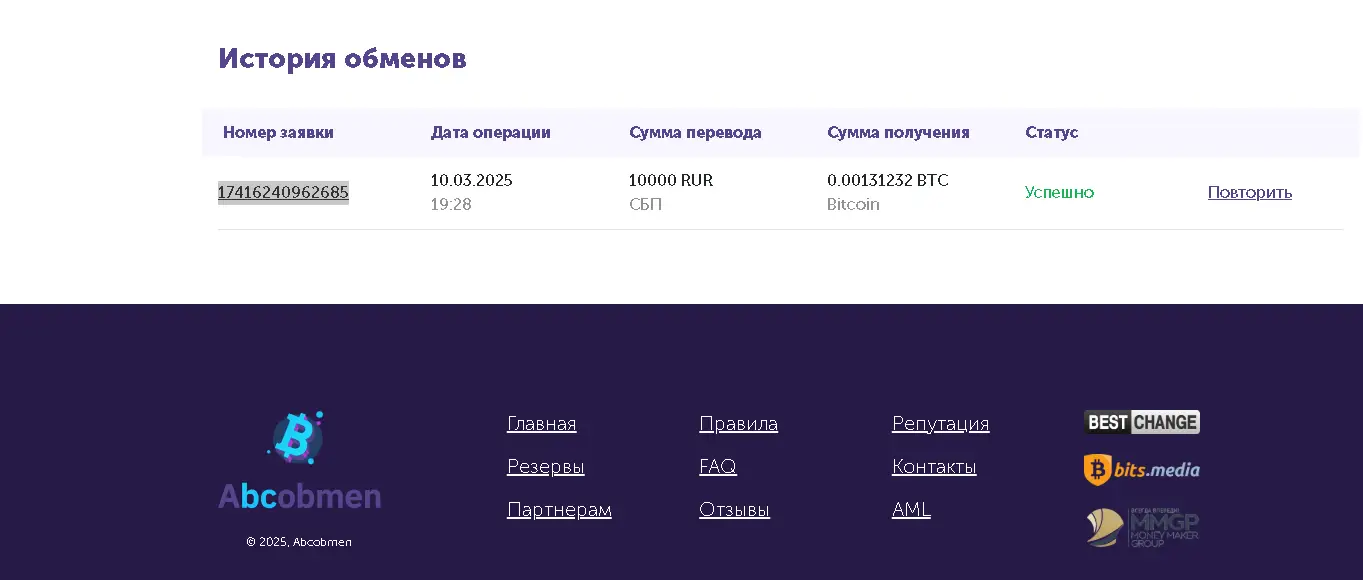 Вы можете оставить свой отзыв, если имеете опыт взаимодействия с обменником AbcObmen. Не забудьте похвалить обменник, если обмен прошел успешно. Если у вас есть жалобы на работу abcobmen.net, вы можете в отзывах высказать все свои претензии.