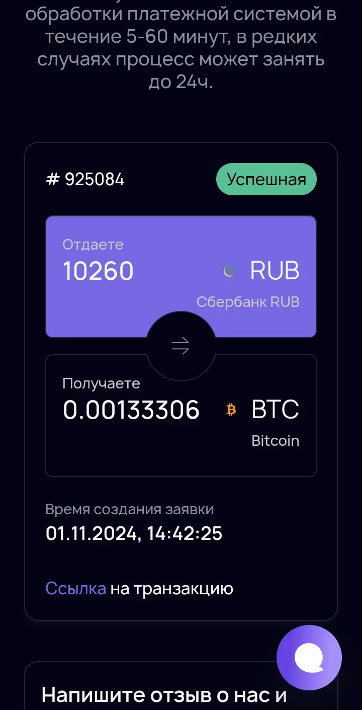 Ваш отзыв очень важен для нас и других пользователей. Отзывы на независимых площадках позволяют оперативно оповещать о мошенничестве со стороны обменников, а также повышать доверие к ним, если обменник получает много положительных отзывов.