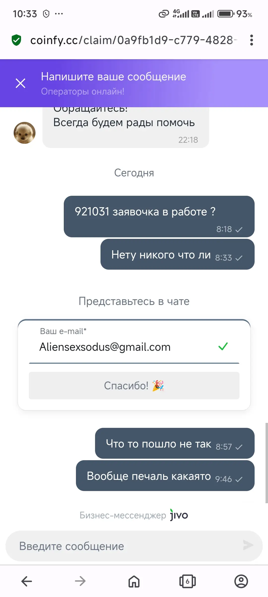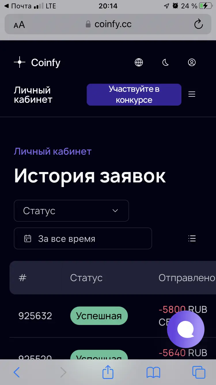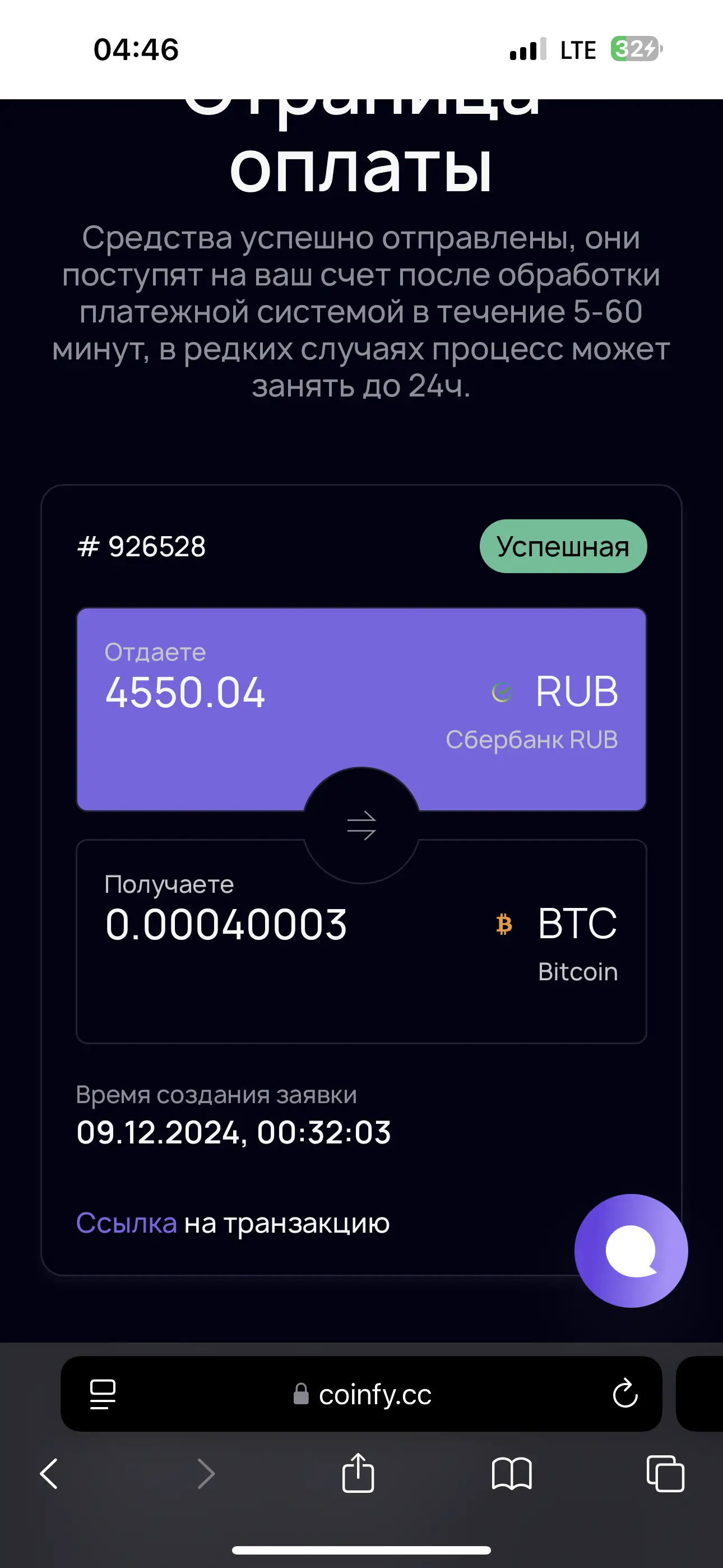 Вы можете оставить свой отзыв, если имеете опыт взаимодействия с обменником Coinfy. Не забудьте похвалить обменник, если обмен прошел успешно. Если у вас есть жалобы на работу coinfy.cc, вы можете в отзывах высказать все свои претензии.