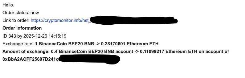 Вы можете оставить свой отзыв, если имеете опыт взаимодействия с обменником Cryptomonitor. Не забудьте похвалить обменник, если обмен прошел успешно. Если у вас есть жалобы на работу cryptomonitor.info, вы можете в отзывах высказать все свои претензии.
