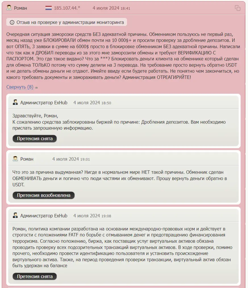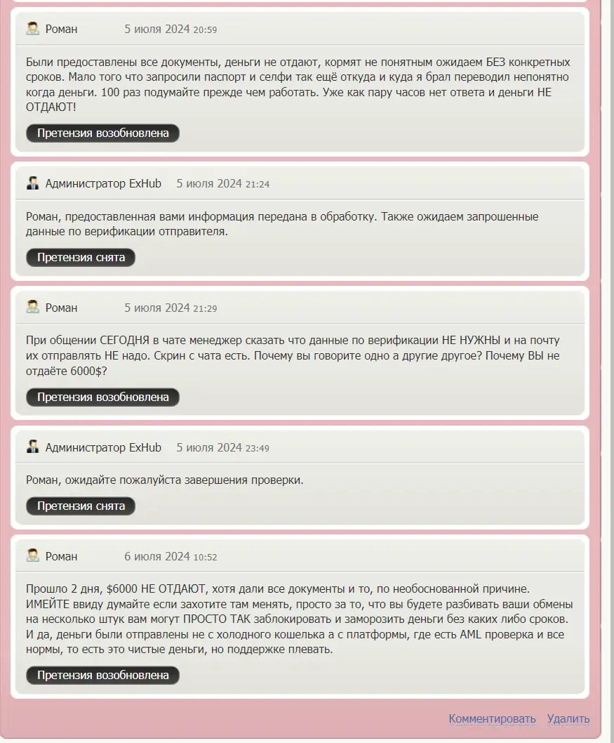 Вы можете оставить свой отзыв, если имеете опыт взаимодействия с обменником Exhub. Не забудьте похвалить обменник, если обмен прошел успешно. Если у вас есть жалобы на работу exhub.io, вы можете в отзывах высказать все свои претензии.